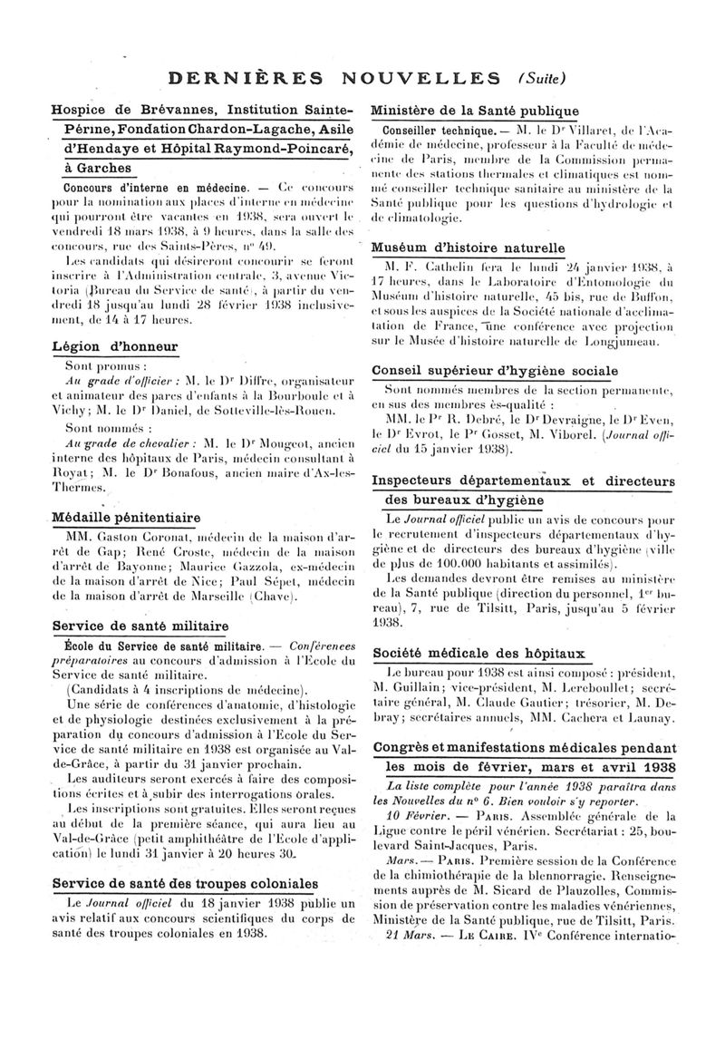 1938, n° 108, partie paramédicale. -