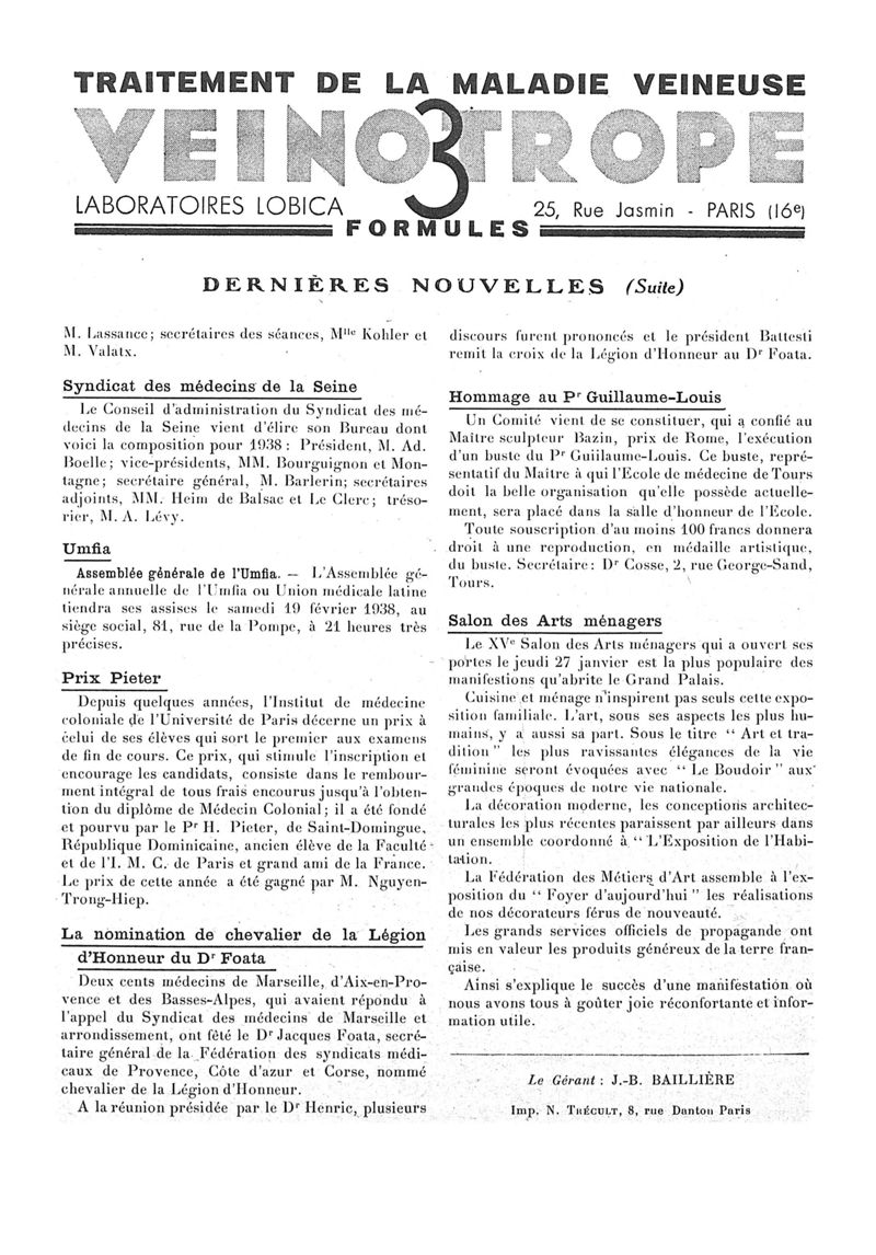 1938, n° 108, partie paramédicale. -