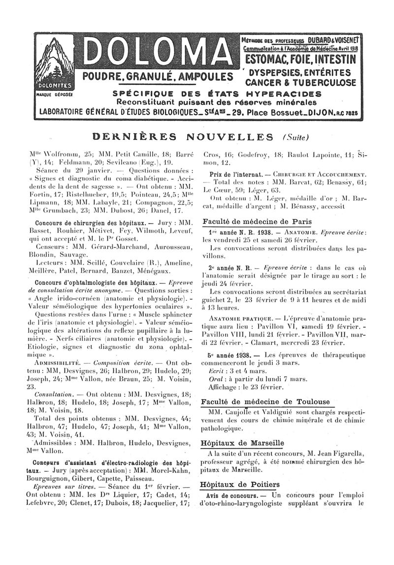 1938, n° 108, partie paramédicale. -