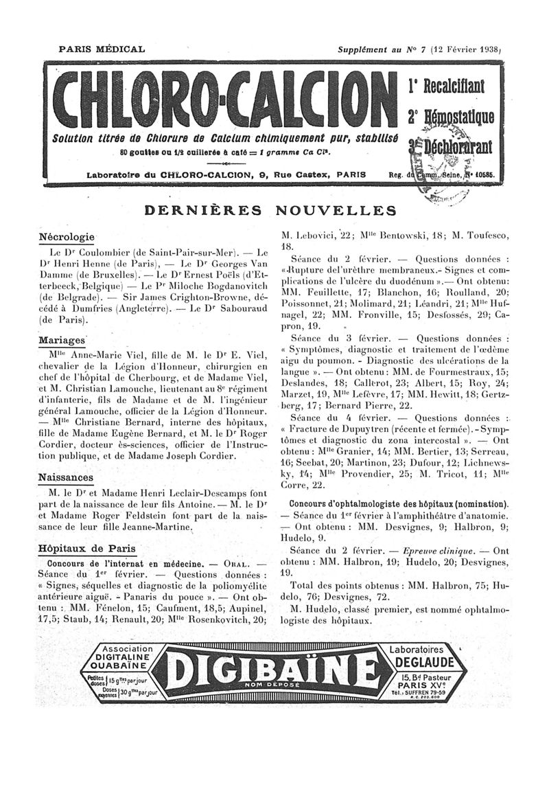 1938, n° 108, partie paramédicale. -