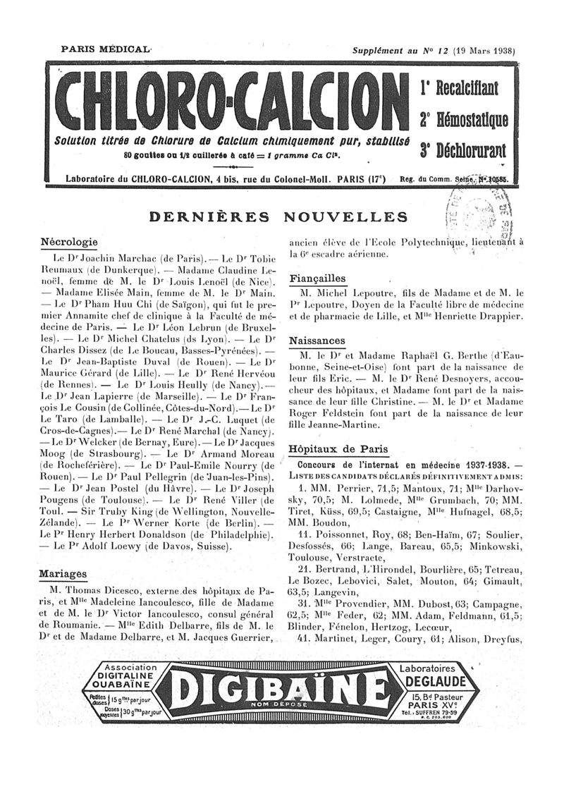 1938, n° 108, partie paramédicale. -