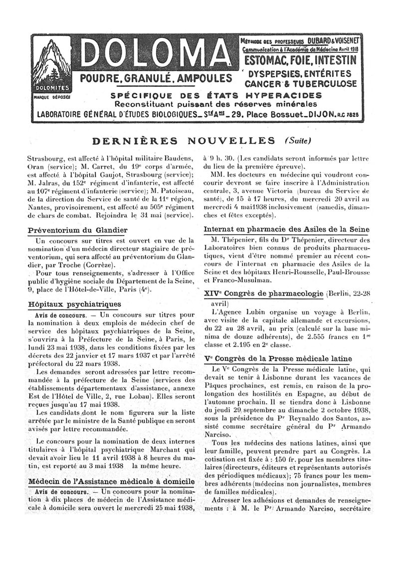 1938, n° 108, partie paramédicale. -