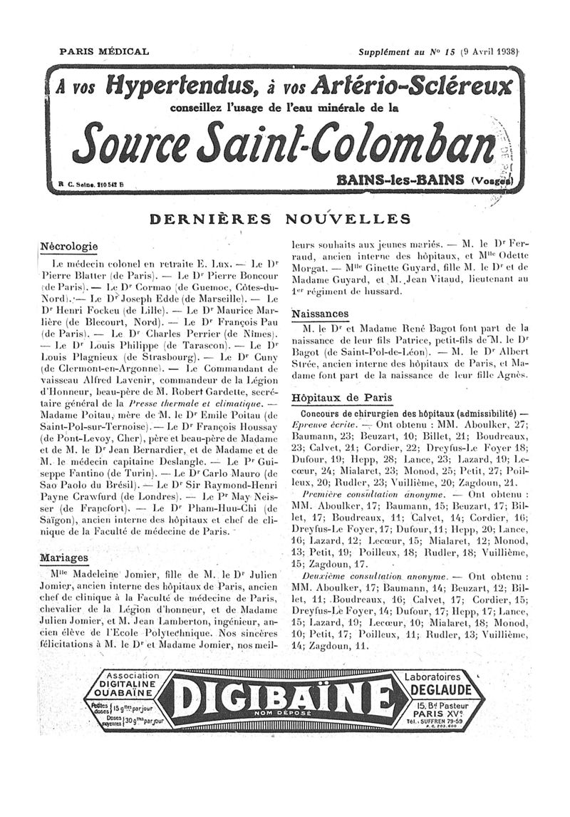 1938, n° 108, partie paramédicale. -