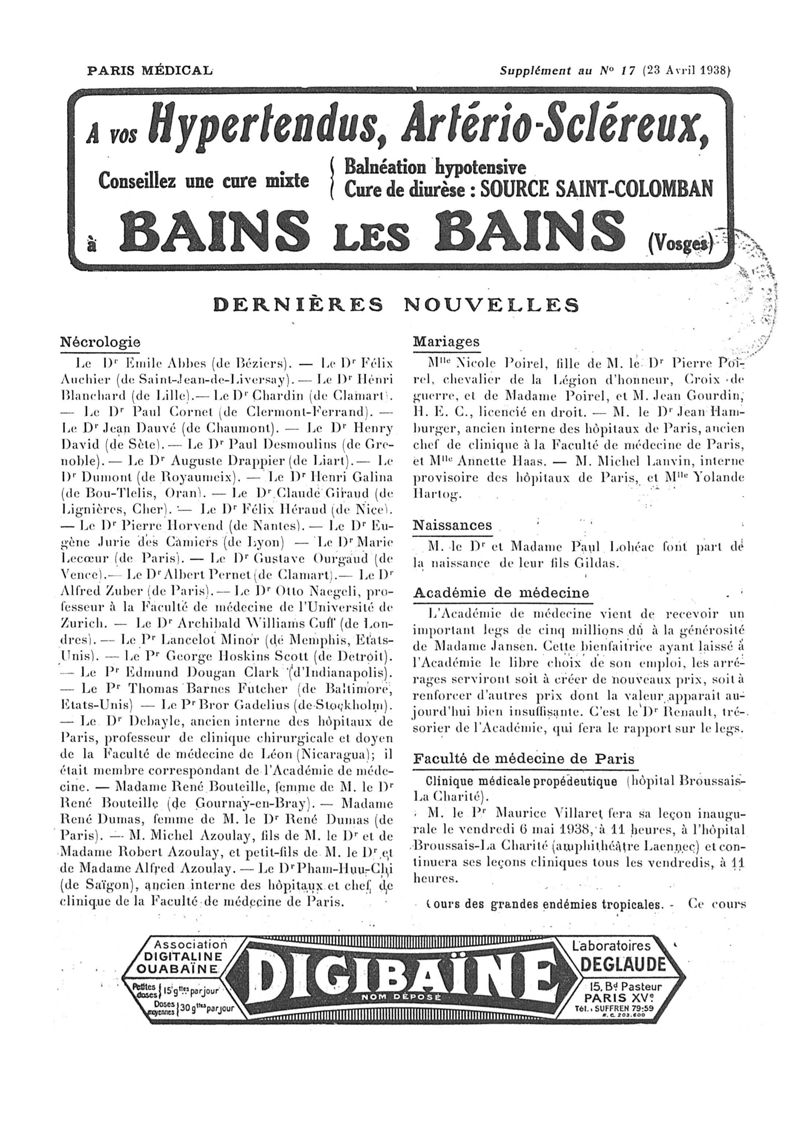 1938, n° 108, partie paramédicale. -