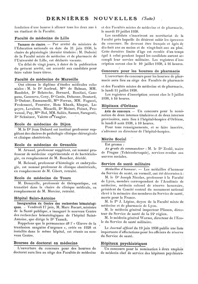 1938, n° 108, partie paramédicale. -