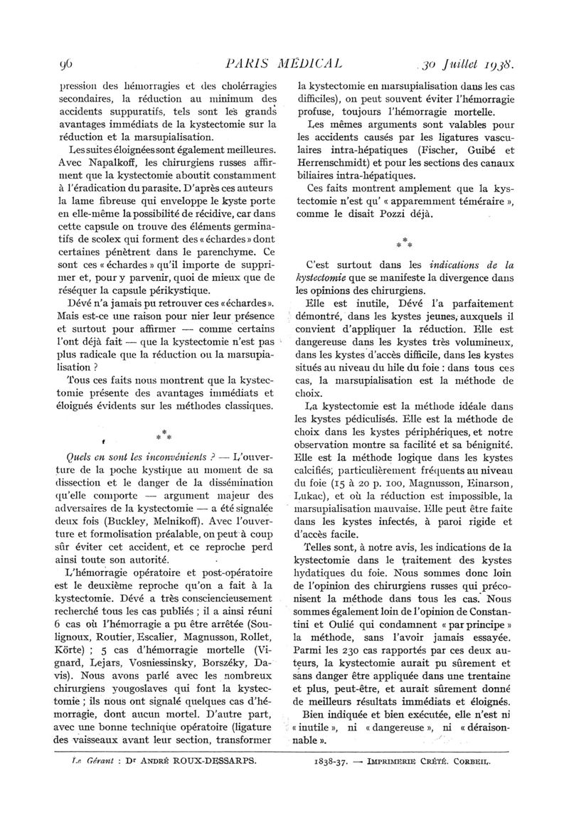 1938, n° 109, partie médicale. -