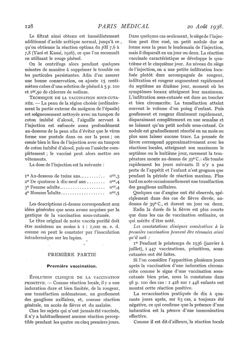 1938, n° 109, partie médicale. -