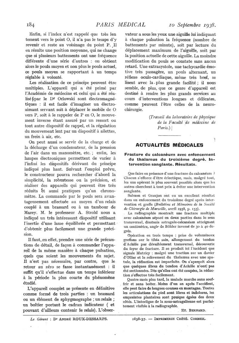 1938, n° 109, partie médicale. -