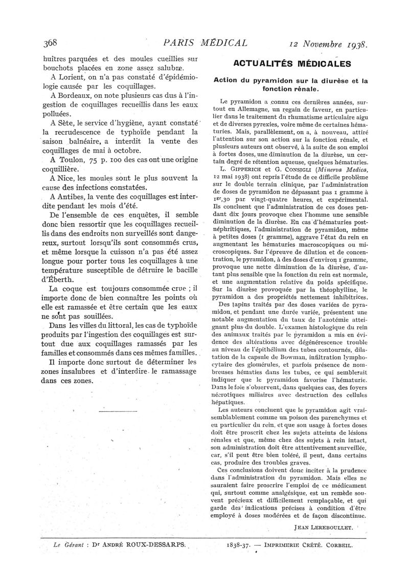 1938, n° 109, partie médicale. -