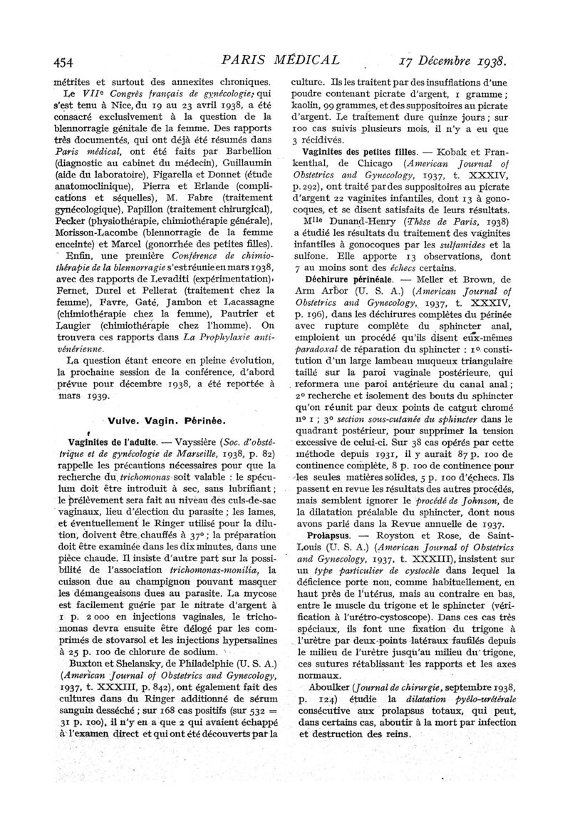 1938, n° 109, partie médicale. -