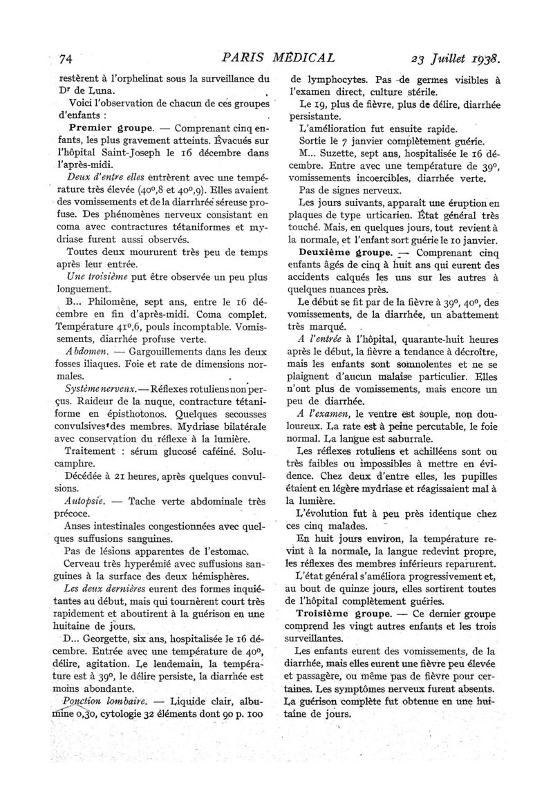 1938, n° 109, partie médicale. -