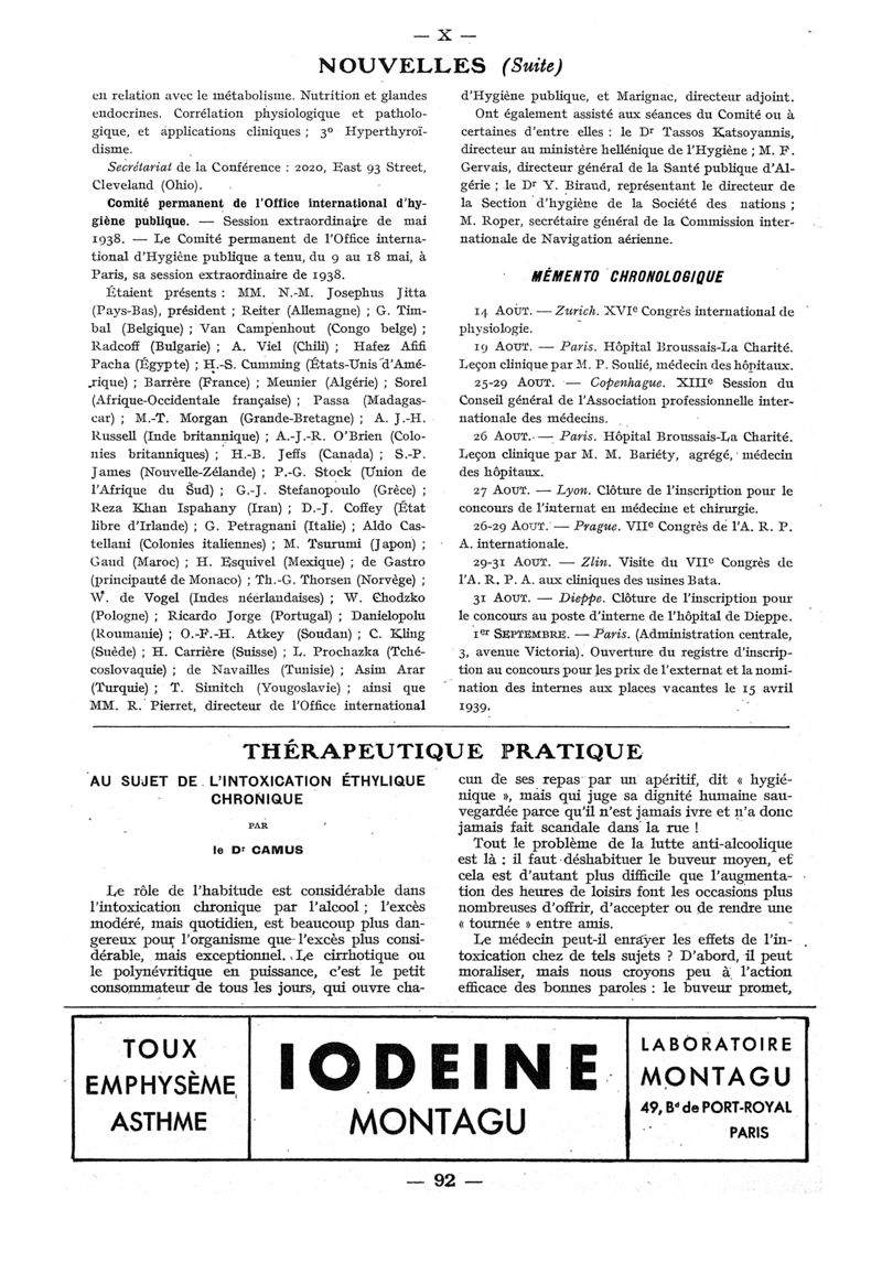 1938, n° 110, partie paramédicale. -