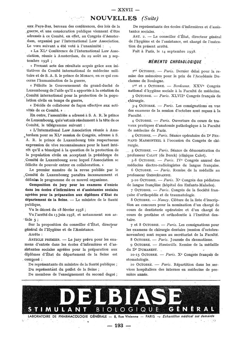 1938, n° 110, partie paramédicale. -