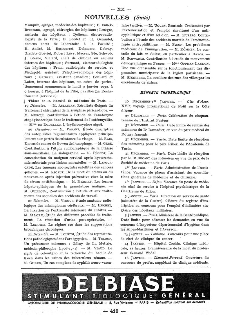 1938, n° 110, partie paramédicale. -