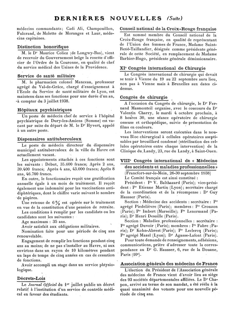 1938, n° 110, partie paramédicale. -