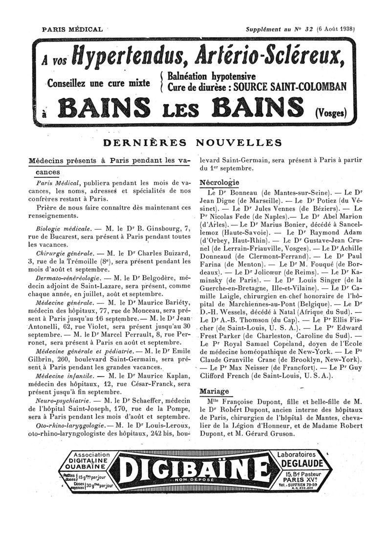 1938, n° 110, partie paramédicale. -