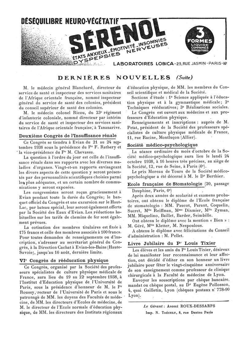 1938, n° 110, partie paramédicale. -