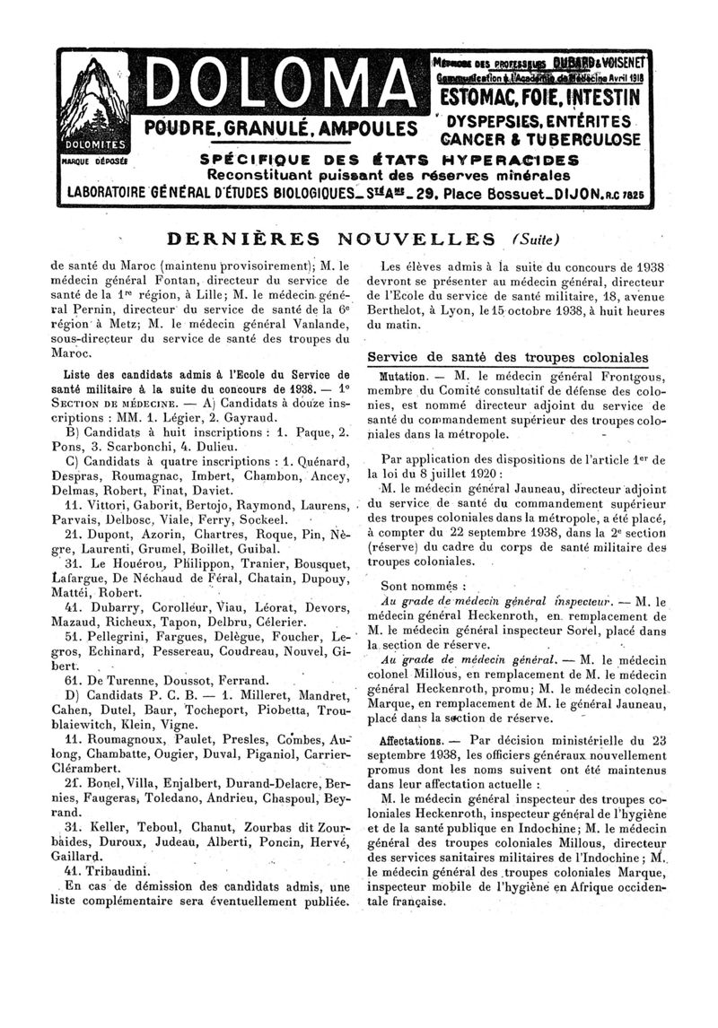 1938, n° 110, partie paramédicale. -