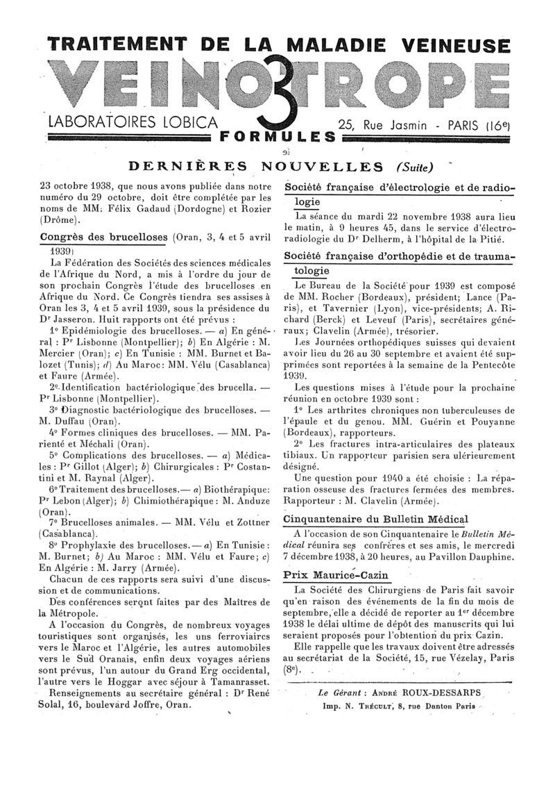 1938, n° 110, partie paramédicale. -