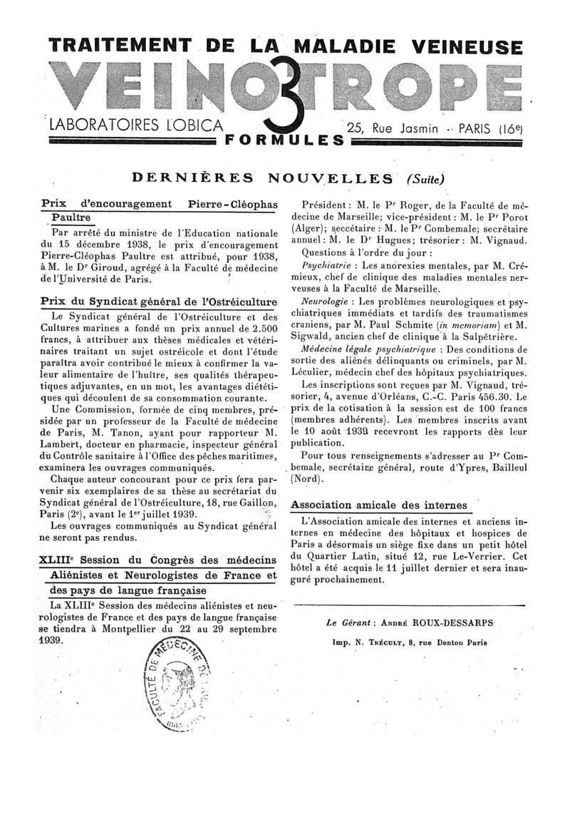 1938, n° 110, partie paramédicale. -