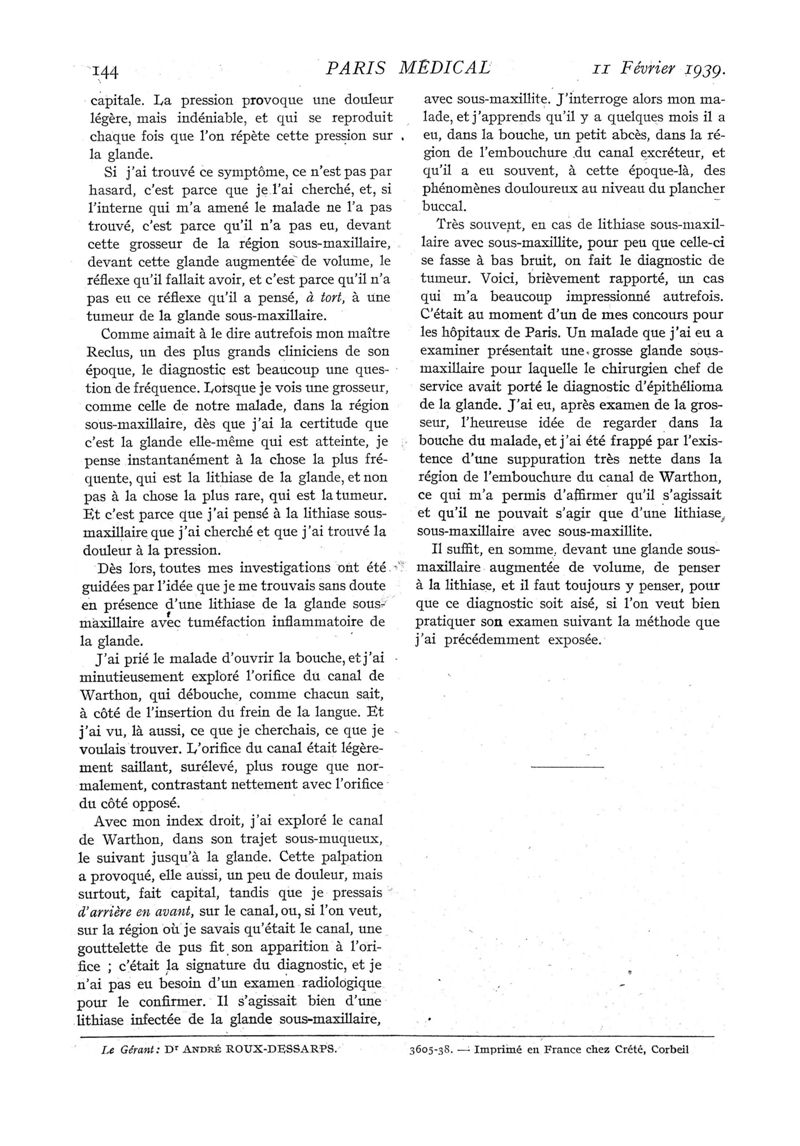 1939, n° 111, partie médicale. -