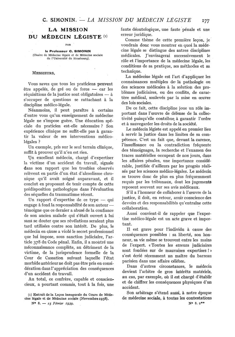 1939, n° 111, partie médicale. -