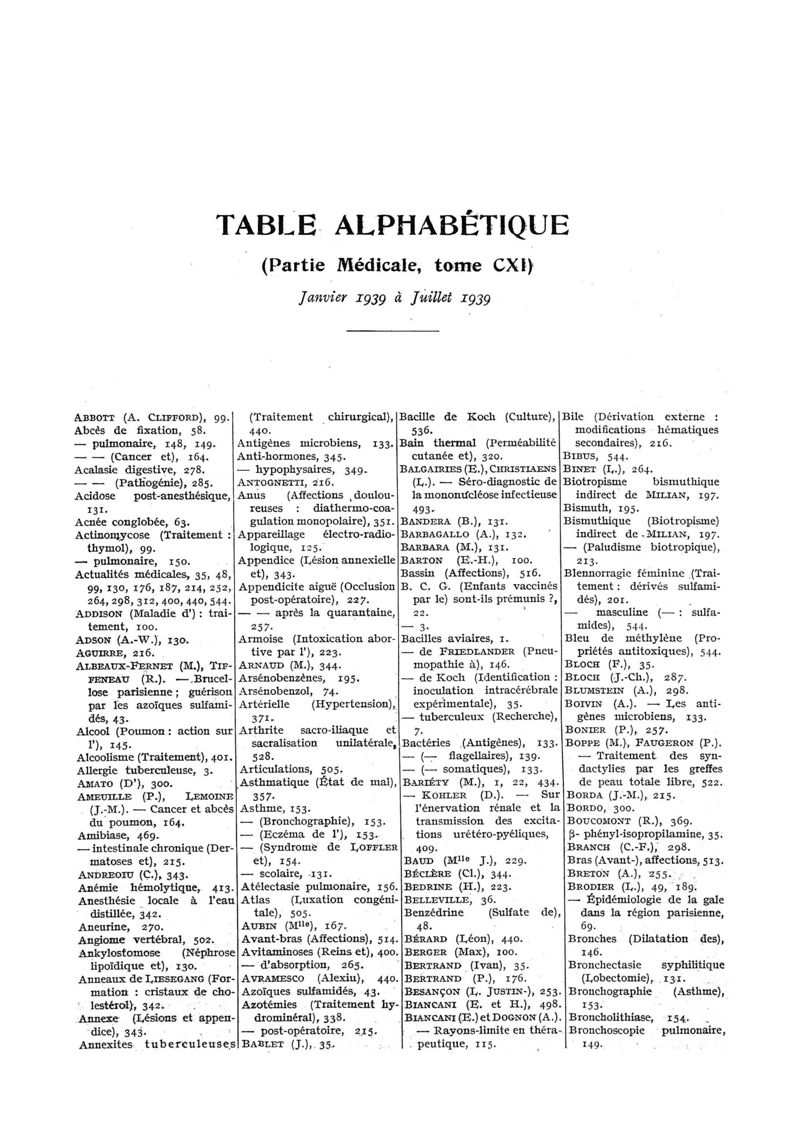 1939, n° 111, partie médicale. -