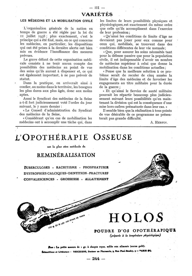 1939, n° 112, partie paramédicale. -