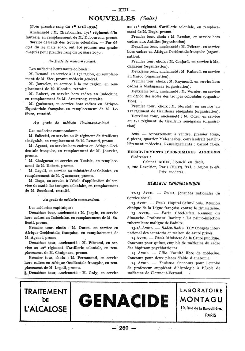 1939, n° 112, partie paramédicale. -