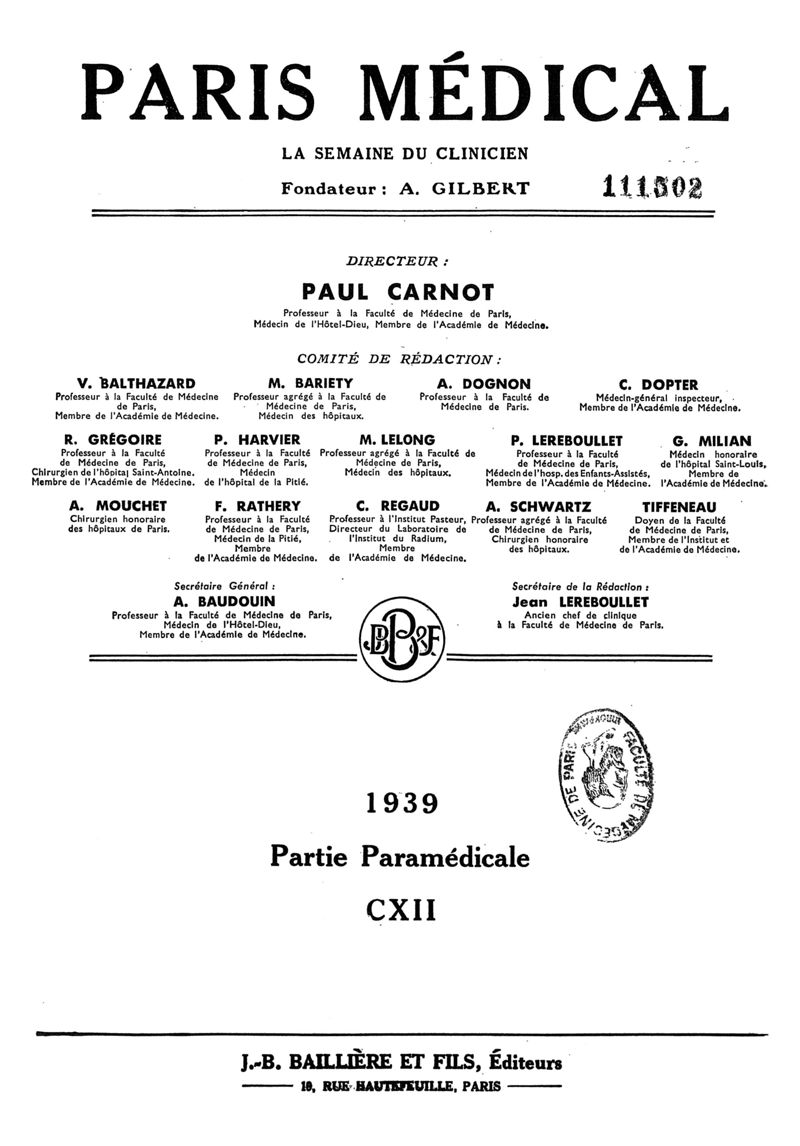 1939, n° 112, partie paramédicale. -