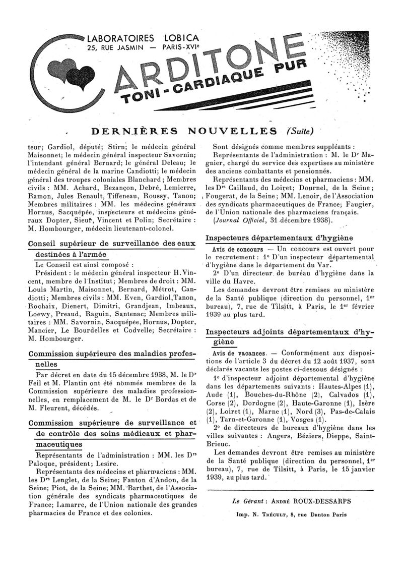 1939, n° 112, partie paramédicale. -