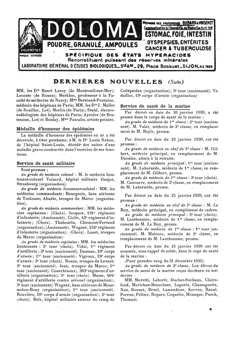 1939, n° 112, partie paramédicale. -