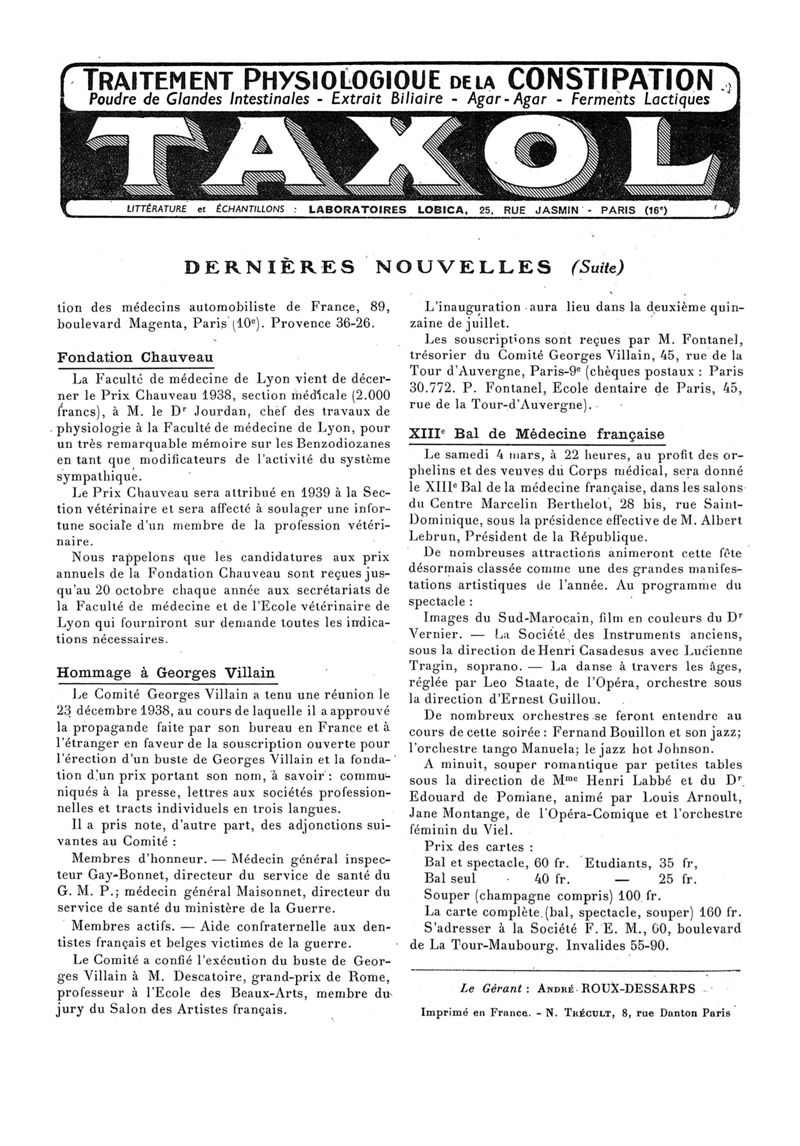 1939, n° 112, partie paramédicale. -