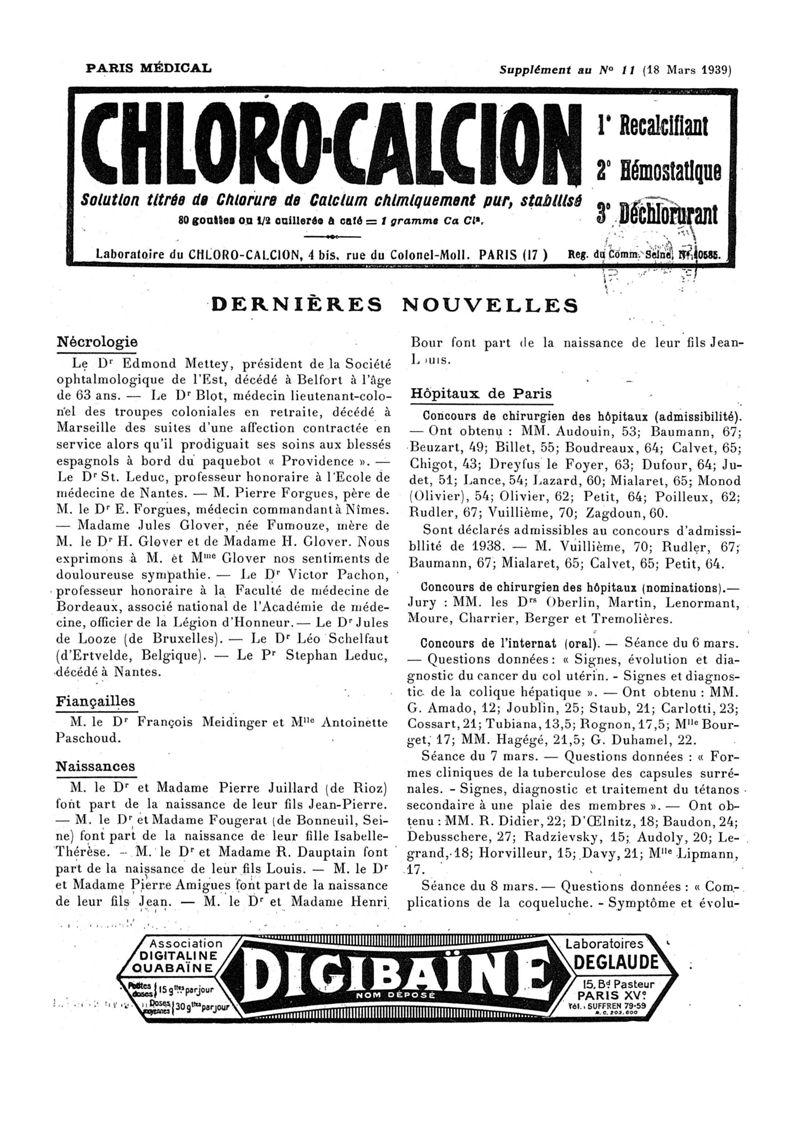 1939, n° 112, partie paramédicale. -