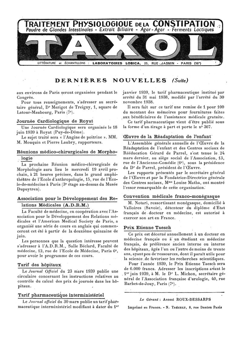 1939, n° 112, partie paramédicale. -