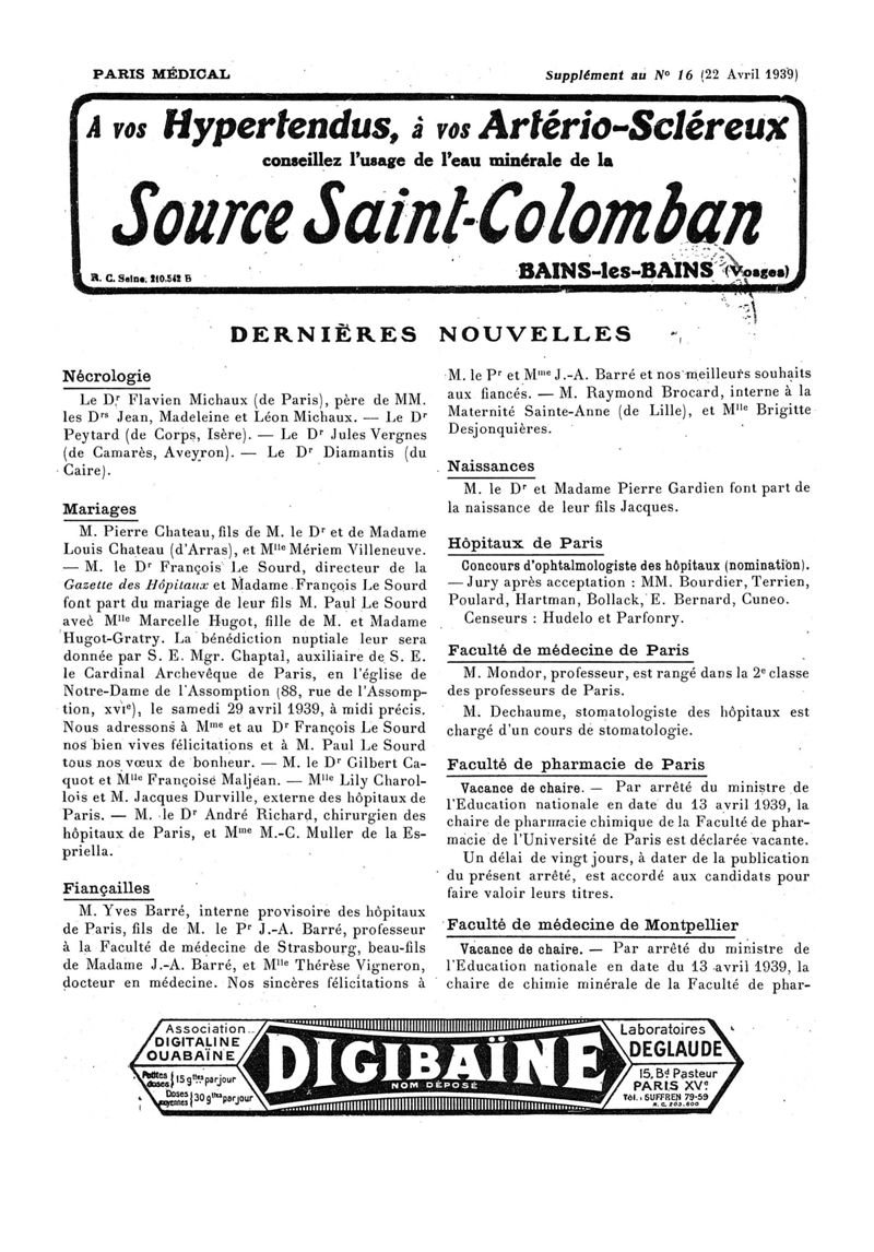 1939, n° 112, partie paramédicale. -
