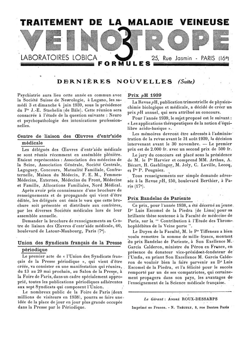 1939, n° 112, partie paramédicale. -