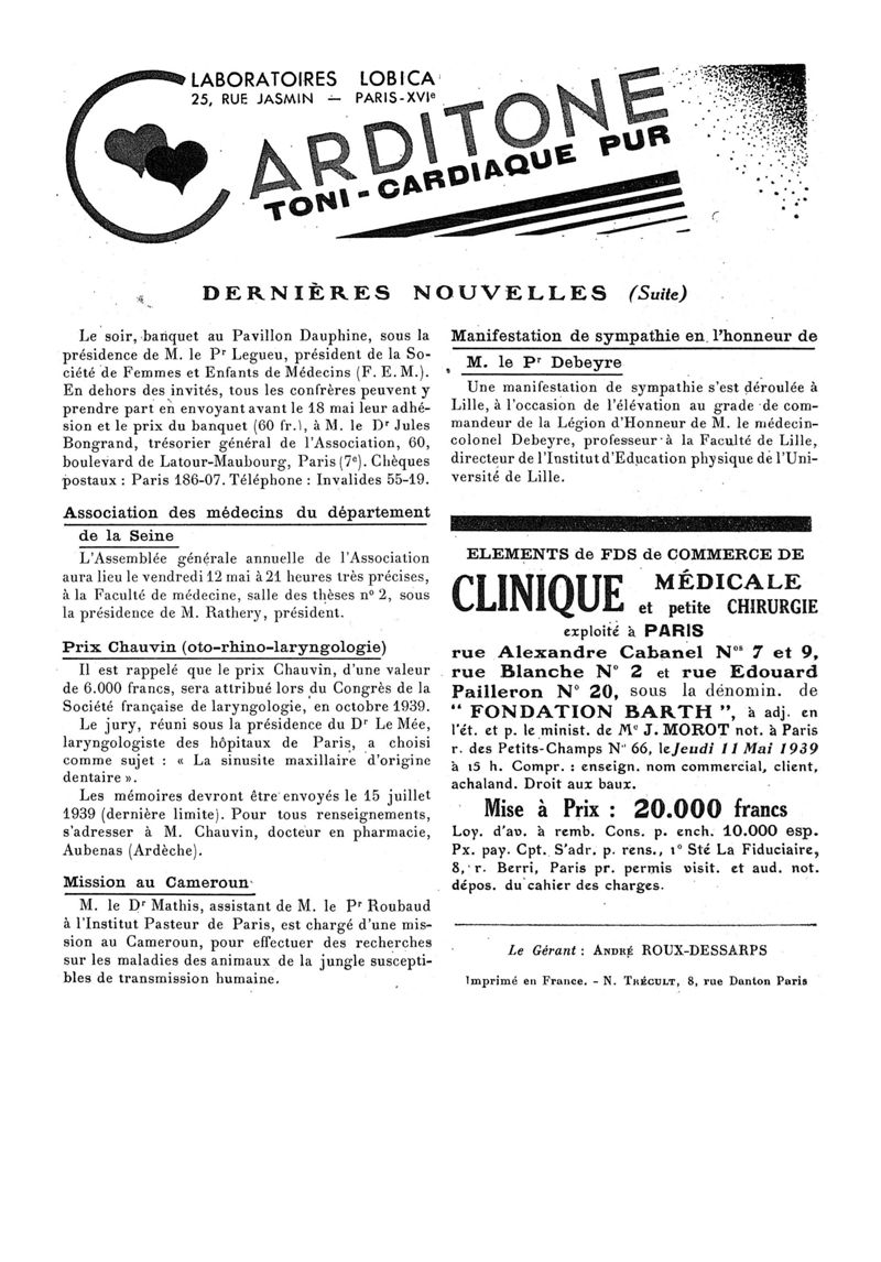 1939, n° 112, partie paramédicale. -