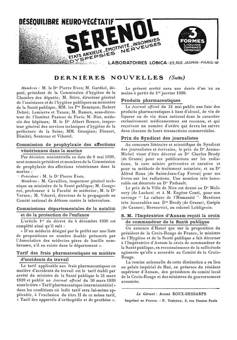 1939, n° 112, partie paramédicale. -