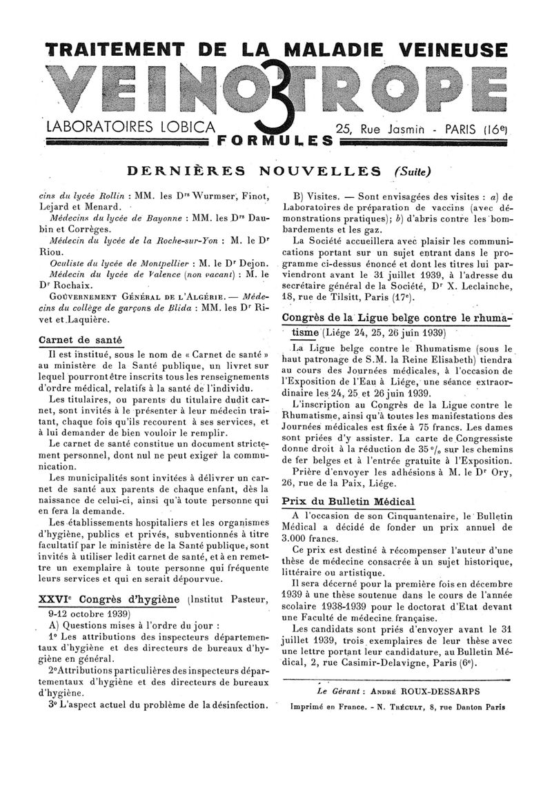 1939, n° 112, partie paramédicale. -