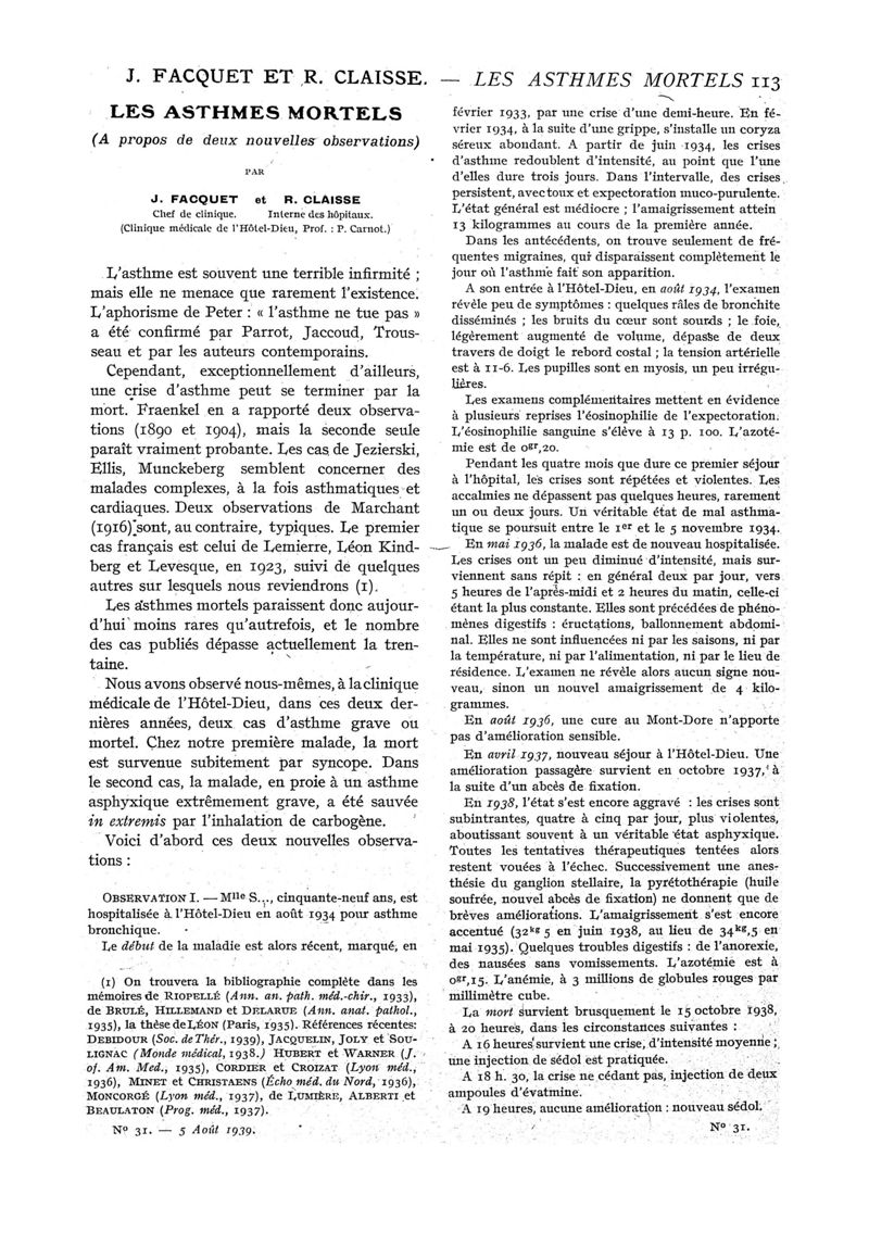 1939, n° 113, partie médicale. -