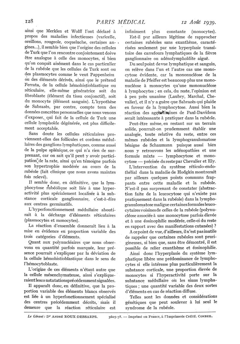 1939, n° 113, partie médicale. -