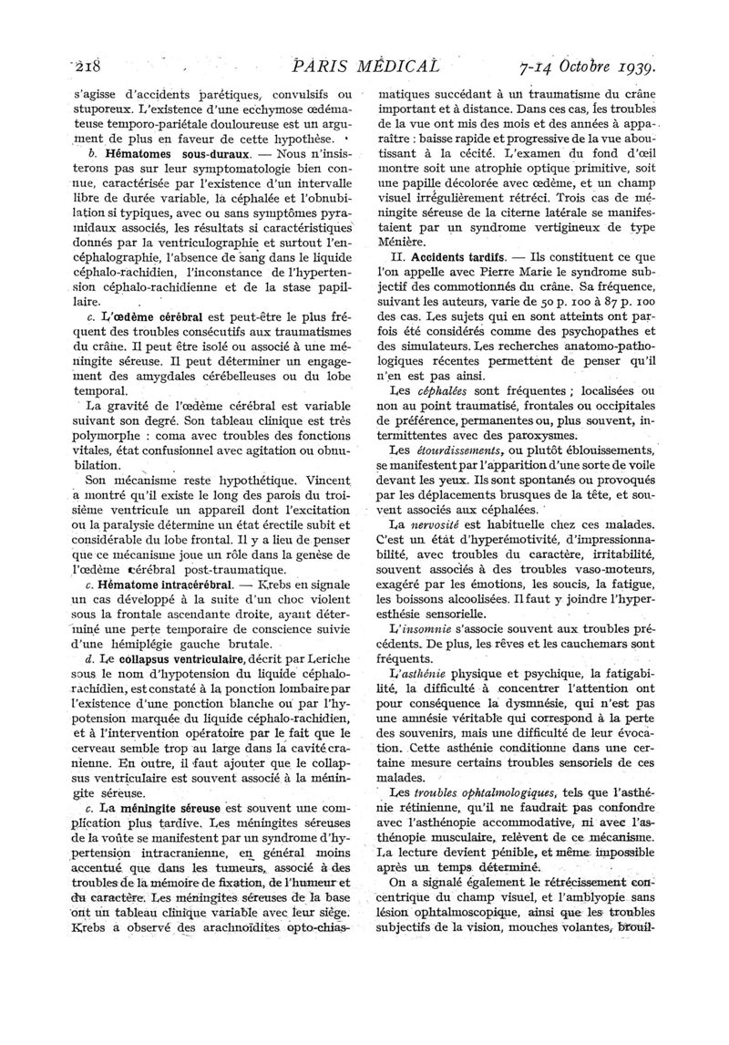1939, n° 113, partie médicale. -