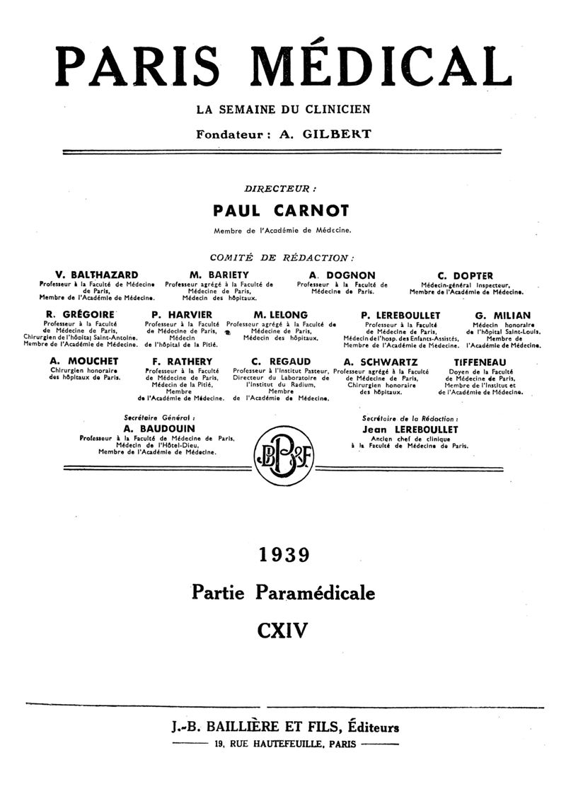 1939, n° 114, partie paramédicale. -