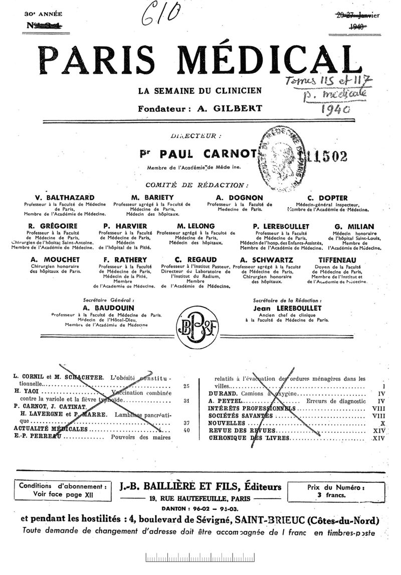 1940, n° 115_117, partie médicale. -