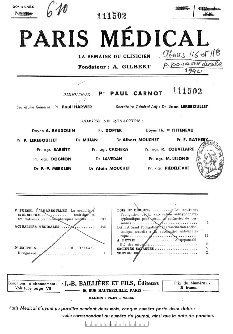 1940, n° 116_118, partie paramédicale. -