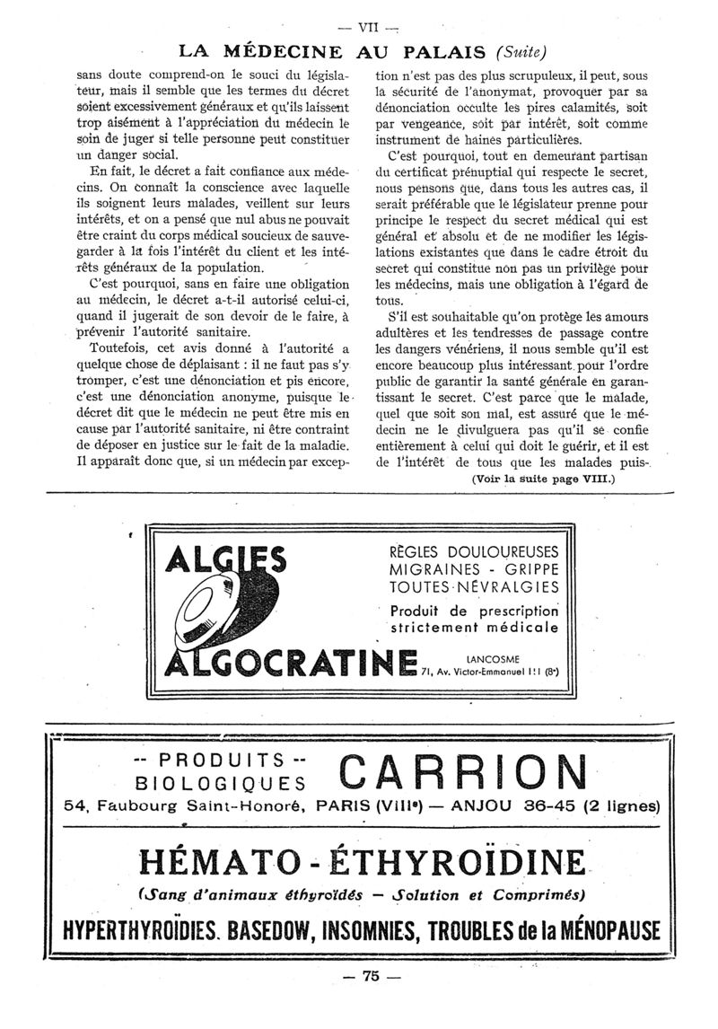 1940, n° 116_118, partie paramédicale. -