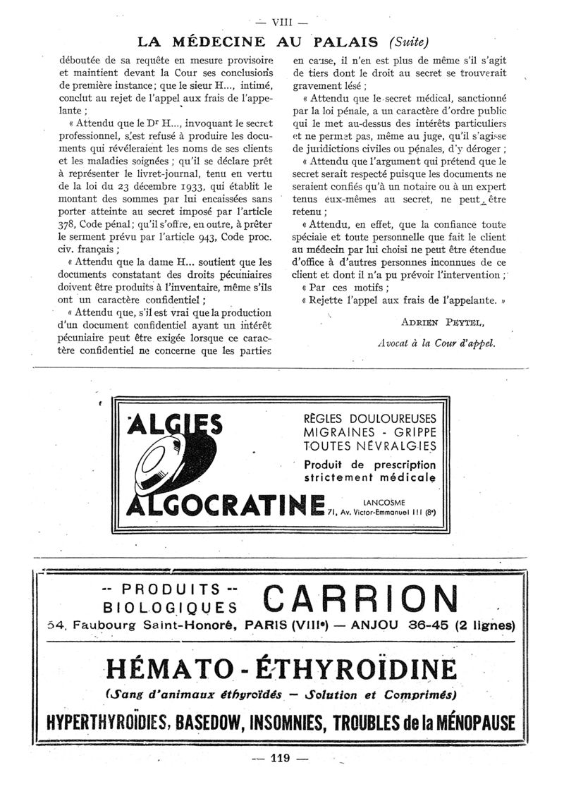 1940, n° 116_118, partie paramédicale. -