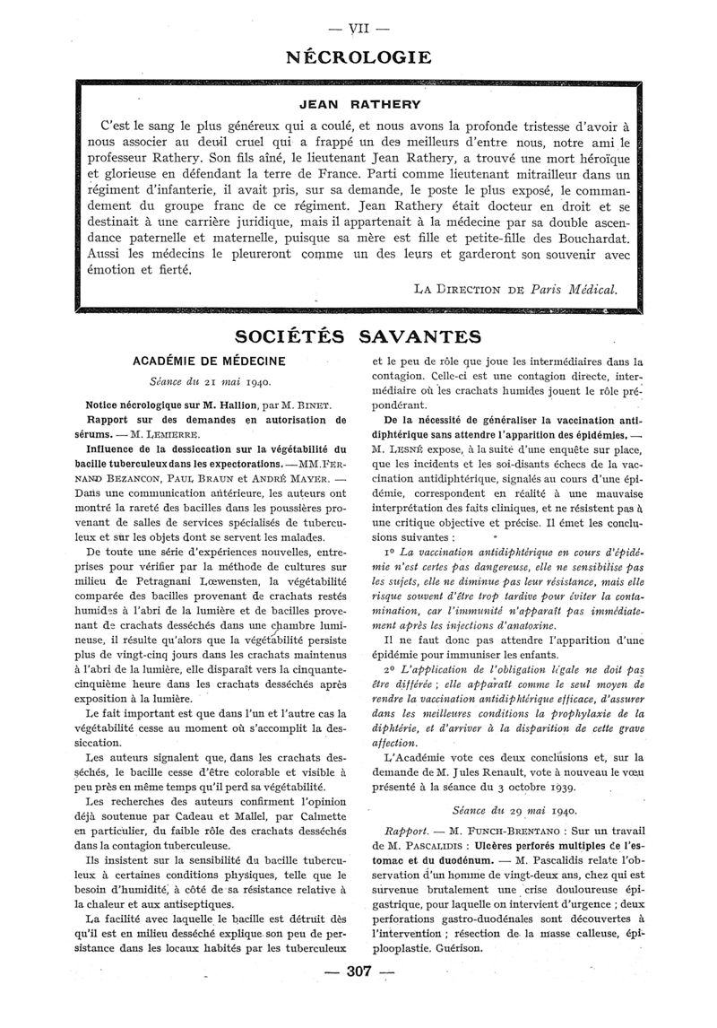 1940, n° 116_118, partie paramédicale. -