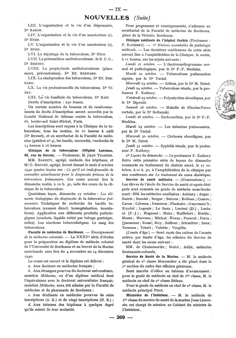 1940, n° 116_118, partie paramédicale. -
